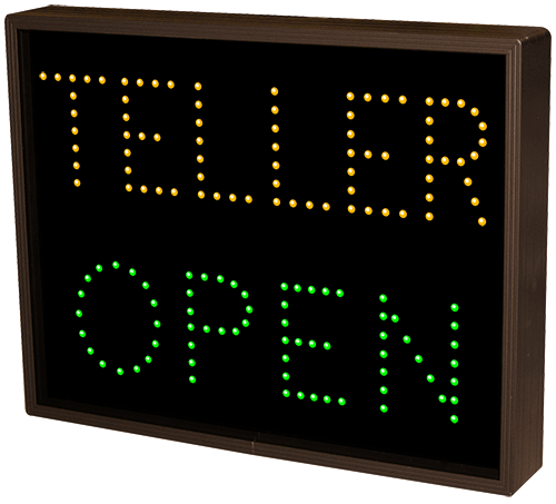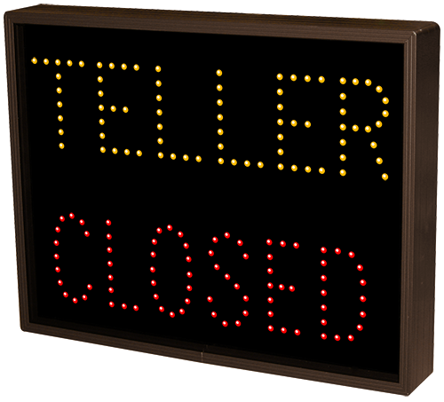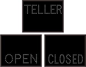 This TCL Series TELLER | OPEN | CLOSED (120-277VAC) outdoor, blank-out sign is designed with super bright LEDs and a contrasting face; we guarantee it's readable in direct sunlight. The sign message is formed by visible LEDs on a black sign face and is designed to illuminate the message(s) when turned on and blank out or extinguish the message when off.