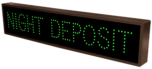 This TCL Series NIGHT DEPOSIT (12-24VDC) outdoor, blank-out sign is designed with super bright LEDs and a contrasting face; we guarantee it's readable in direct sunlight. The sign message is formed by visible LEDs on a black sign face and is designed to illuminate the message(s) when turned on and blank out or extinguish the message when off.