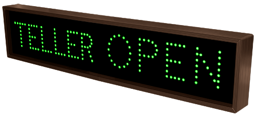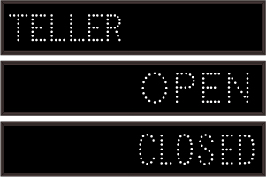 This TCL Series TELLER | OPEN | CLOSED (12-24VDC) outdoor, blank-out sign is designed with super bright LEDs and a contrasting face; we guarantee it's readable in direct sunlight. The sign message is formed by visible LEDs on a black sign face and is designed to illuminate the message(s) when turned on and blank out or extinguish the message when off.