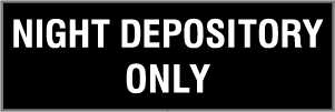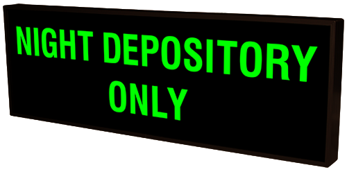 This PHX Series NIGHT DEPOSITORY ONLY outdoor, blankout sign is designed with high-intensity, LED reflected, backlit illumination and a block letter-style message face. The sign message illuminates when turned on and blanks out or extinguishes when off. PHX Series signs are guaranteed readable in direct sunlight.