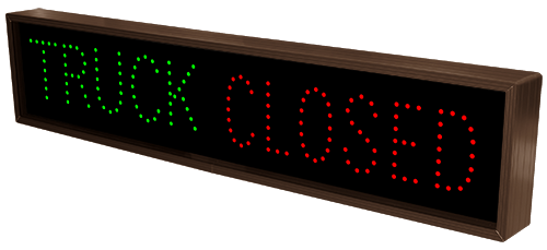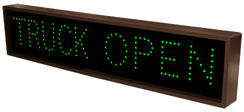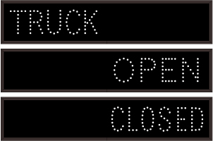 This TCL Series TRUCK | OPEN | CLOSED outdoor, blank-out sign is designed with super bright LEDs and a contrasting face; we guarantee it's readable in direct sunlight. The sign message is formed by visible LEDs on a black sign face and is designed to illuminate the message(s) when turned on and blank out or extinguish the message when off.