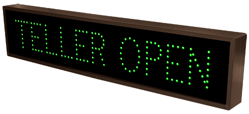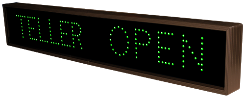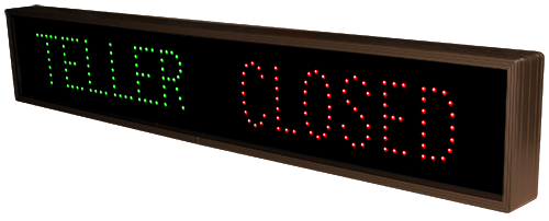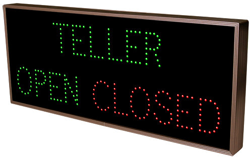 This TCL Series TELLER | OPEN | CLOSED outdoor, blank-out sign is designed with super bright LEDs and a contrasting face; we guarantee it's readable in direct sunlight. The sign message is formed by visible LEDs on a black sign face and is designed to illuminate the message(s) when turned on and blank out or extinguish the message when off.