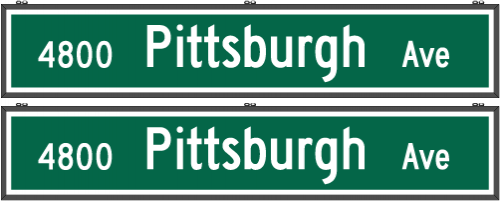 This 4900 Pittsburgh Ave | 4800 Pittsburgh Ave SNS series sign is internally illuminated and features printed graphics on a translucent, prismatic retroreflective vinyl that is applied on the second surface of a UV-resistant, 0.125-inch high-impact acrylic face panel. The cabinet is constructed of lightweight, extruded aluminum alloy with a black finish, hinged doors, and lockable latches. NEMA3X/IP55. Voltage range is 100-277VAC.