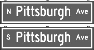 This N Pittsburgh Ave | S Pittsburgh Ave SNS series sign is internally illuminated and features printed graphics on a translucent, prismatic retroreflective vinyl that is applied on the second surface of a UV-resistant, 0.125-inch high-impact acrylic face panel. The cabinet is constructed of lightweight, extruded aluminum alloy with a black finish, hinged doors, and lockable latches. NEMA3X/IP55. Voltage range is 100-277VAC.