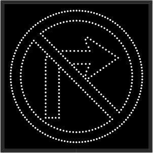 This STR Series NO RIGHT TURN SYMBOL outdoor, highway-grade blank-out sign is designed with a NEMA 3R cabinet, super bright LEDs and a contrasting face; guaranteed readable in direct sunlight. The sign message is formed by strategically placed visible LEDs on a black sign face and is designed to illuminate the message or messages when turned on and blank-out or extinguish the message when off.