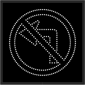 This STR Series No Left Turn Symbol outdoor, highway-grade blank-out sign is designed with a NEMA 3R cabinet, super bright LEDs and a contrasting face; guaranteed readable in direct sunlight. The sign message is formed by strategically placed visible LEDs on a black sign face and is designed to illuminate the message or messages when turned on and blank-out or extinguish the message when off.