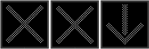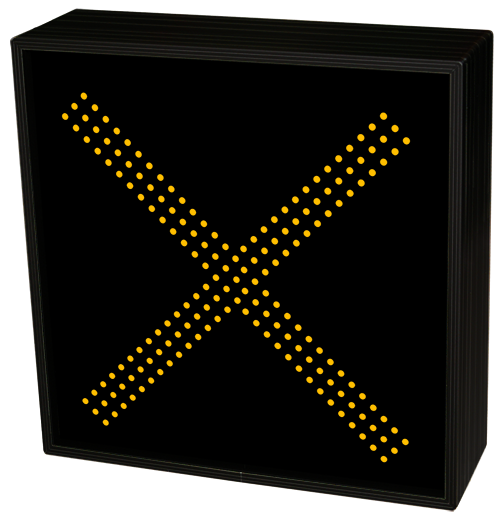 This STR Series X | X | Down Arrow outdoor, highway-grade blank-out sign is designed with a NEMA 3R cabinet, super bright LEDs and a contrasting face; guaranteed readable in direct sunlight. The sign message is formed by strategically placed visible LEDs on a black sign face and is designed to illuminate the message or messages when turned on and blank-out or extinguish the message when off.