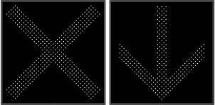 This STR Series X | DOWN ARROW outdoor, highway-grade blank-out sign is designed with a NEMA 3R cabinet, super bright LEDs and a contrasting face; guaranteed readable in direct sunlight. The sign message is formed by strategically placed visible LEDs on a black sign face and is designed to illuminate the message or messages when turned on and blank-out or extinguish the message when off.