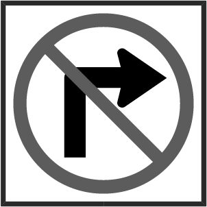 No Right Turn Symbol ImageNo Right Turn Symbol Black Opaque, Red Translucent, White Wide Angle LED 21.0", 12.75"