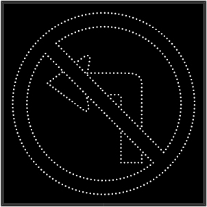 This STR Series No Left Turn Symbol outdoor, highway-grade blank-out sign is designed with a NEMA 3R cabinet, super bright LEDs and a contrasting face; guaranteed readable in direct sunlight. The sign message is formed by strategically placed visible LEDs on a black sign face and is designed to illuminate the message or messages when turned on and blank-out or extinguish the message when off.