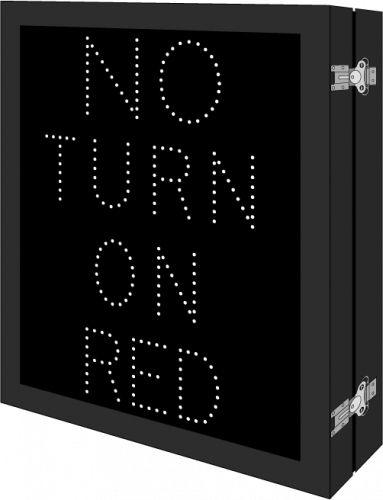 This DOT Series NO TURN ON RED sign is a direct-view LED design that illuminates white LEDs when activated and blanks out when deactivated. Outside cabinet dimensions are 35.000" x 29.000" x 6.500".