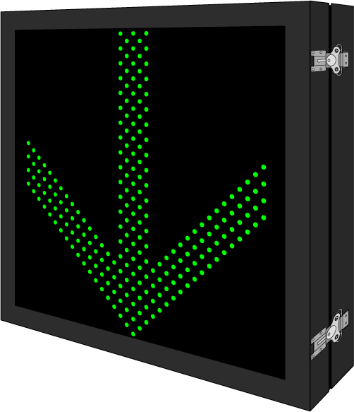 This DOT Series X | Down Arrow sign is a direct-view LED design that illuminates when activated and blanks out when deactivated. Outside cabinet dimensions are 23.000" x 23.000" x 6.500".
