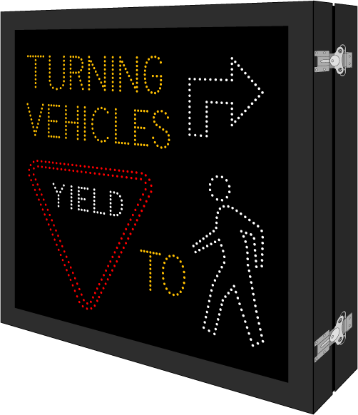 TURNING VEHICLES Right Turn Arrow YIELD to Pedestrian Symbol Amber, White, Red Narrow Angle LED 3.875", 8.5", 17.125", 4.25", 17.0"