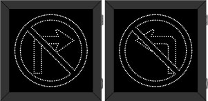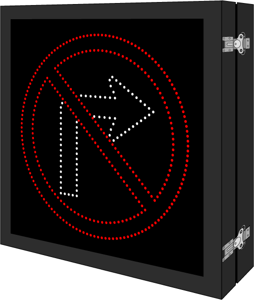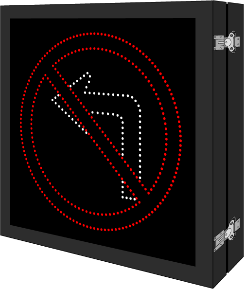 This DOT Series No Right Turn Symbol | No Left Turn Symbol sign is a direct-view LED design that illuminates red and white when activated and blanks out when deactivated.