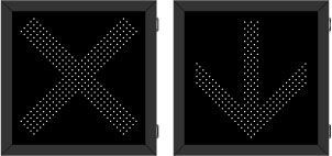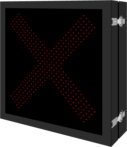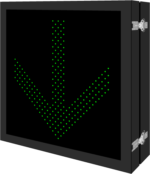 This DOT Series X | Down Arrow sign is a direct-view LED design that illuminates when activated and blanks out when deactivated. Outside cabinet dimensions are 35.000" x 35.000" x 6.500".