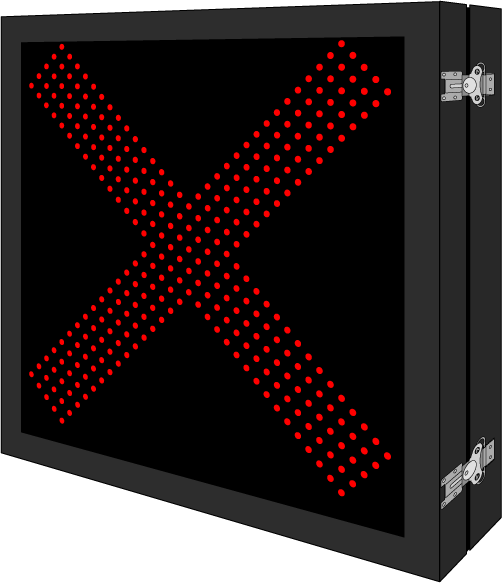 This DOT Series X | Down Arrow sign is a direct-view LED design that illuminates when activated and blanks out when deactivated. Outside cabinet dimensions are 23.000" x 23.000" x 6.500".