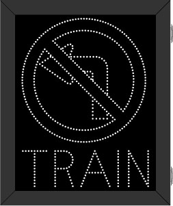This DOT Series R3-2 No Left Turn Symbol w/ TRAIN sign is a direct-view LED design that illuminates when activated and blanks out when deactivated. Outside cabinet dimensions are 35.000" x 29.000" x 6.500".