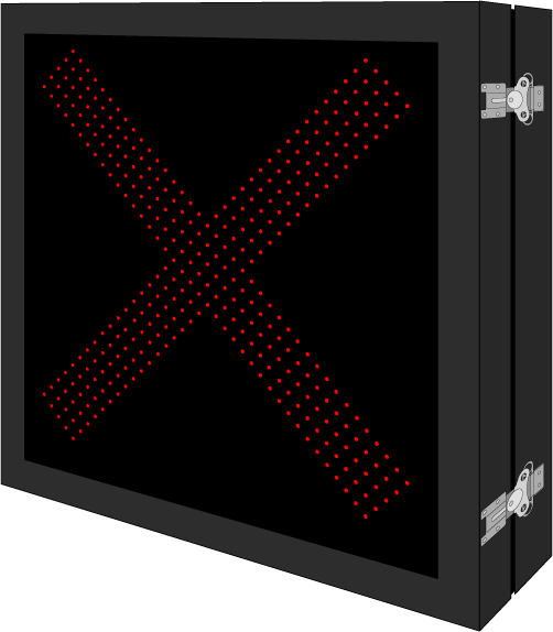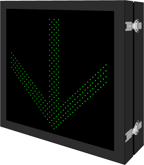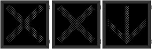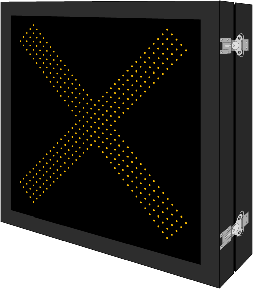 This DOT Series, X | X | Down Arrow sign is a direct-view LED design that illuminates when activated and blanks out when deactivated. Outside cabinet dimensions are 38.000" x 38.000" x 6.500".