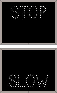 This TCL Series STOP | SLOW outdoor, blank-out sign is designed with super bright LEDs and a contrasting face; we guarantee it's readable in direct sunlight. The sign message is formed by visible LEDs on a black sign face and is designed to illuminate the message(s) when turned on and blank out or extinguish the message when off.