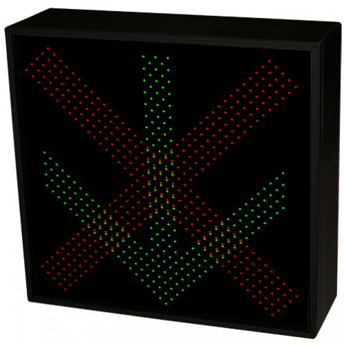 This STR Series X | DOWN ARROW outdoor, highway-grade blank-out sign is designed with a NEMA 3R cabinet, super bright LEDs and a contrasting face; guaranteed readable in direct sunlight. The sign message is formed by strategically placed visible LEDs on a black sign face and is designed to illuminate the message or messages when turned on and blank-out or extinguish the message when off.