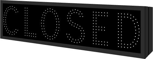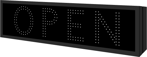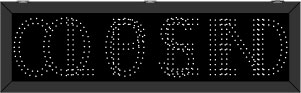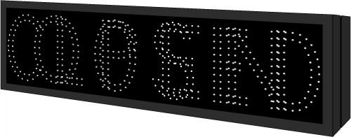 This DOT Series OPEN | CLOSED sign is a direct-view LED design that illuminates white when activated and blanks out when deactivated. Outside cabinet dimensions are 20.000" x 66.000" x 6.500".