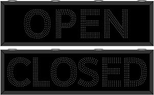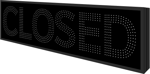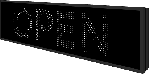 This DOT Series, OPEN | CLOSED sign is a direct-view LED design that illuminates when activated and blanks out when deactivated. Outside cabinet dimensions are 29.000" x 99.000" x 6.500".