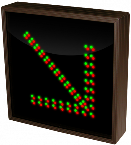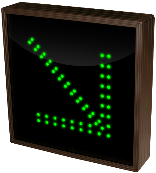 This TCL Series Down Right Arrow | Down Right Arrow (120-277VAC) outdoor, blank-out sign is designed with super bright LEDs and a contrasting face; we guarantee it's readable in direct sunlight. The sign message is formed by visible LEDs on a black sign face and is designed to illuminate the message(s) when turned on and blank out or extinguish the message when off.