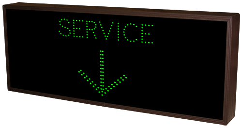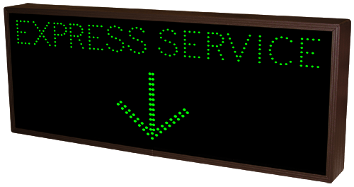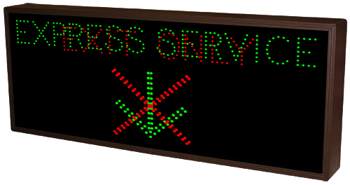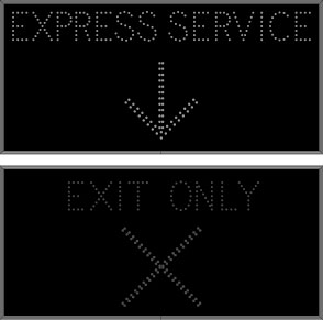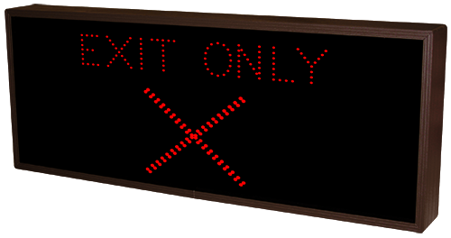 This TCL Series EXPRESS SERVICE w/Down Arrow | EXIT ONLY X (120-277VAC) outdoor, blank-out sign is designed with super bright LEDs and a contrasting face; we guarantee it's readable in direct sunlight. The sign message is formed by visible LEDs on a black sign face and is designed to illuminate the message(s) when turned on and blank out or extinguish the message when off.