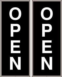 This PHX Series OPEN | OPEN outdoor, blankout sign is designed with high-intensity, LED reflected, backlit illumination and a block letter-style message face. The sign message illuminates when turned on and blanks out or extinguishes when off. PHX Series signs are guaranteed readable in direct sunlight.