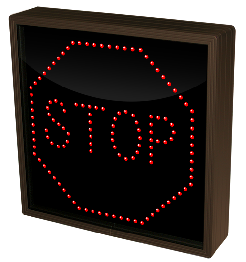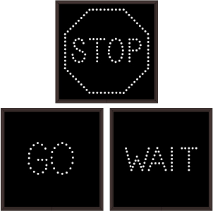 This TCL Series STOP w/Octagon | GO | WAIT outdoor, blank-out sign is designed with super bright LEDs and a contrasting face; we guarantee it's readable in direct sunlight. The sign message is formed by visible LEDs on a black sign face and is designed to illuminate the message(s) when turned on and blank out or extinguish the message when off.