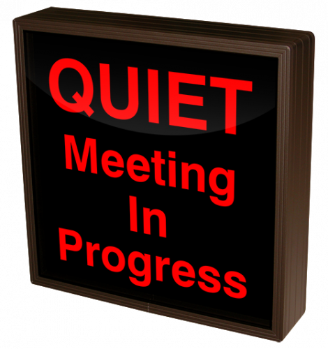 This SBL Series QUIET Meeting In Progress indoor, blankout, LED backlit sign is designed with a matrix of energy efficient LEDs illuminating a block-style message. The sign features blankout technology that only displays the sign message when illuminated.