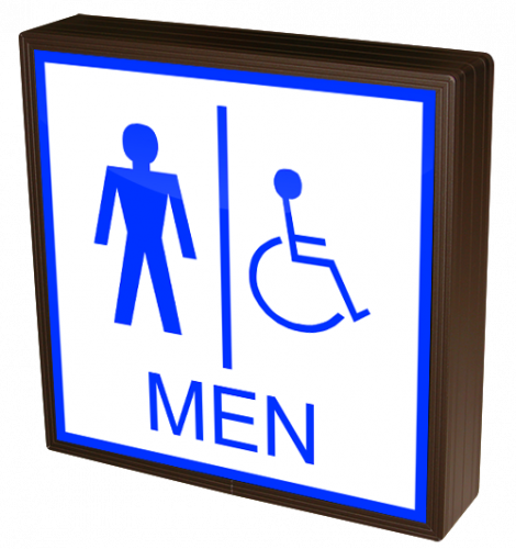 This SBLF Series MEN w/Symbols indoor, LED backlit sign features a block-style message that is readable without illumination. The message is viewable when off and can be illuminated to add emphasis to the message or to optimize readability in low light conditions.