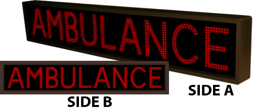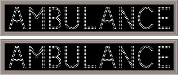 This TCL Series AMBULANCE | AMBULANCE (120-277VAC) outdoor, blank-out sign is designed with super bright LEDs and a contrasting face; we guarantee it's readable in direct sunlight. The sign message is formed by visible LEDs on a black sign face and is designed to illuminate the message(s) when turned on and blank out or extinguish the message when off.