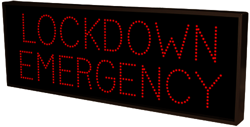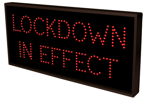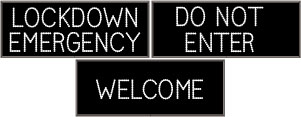 This TCL Series LOCKDOWN EMERGENCY | DO NOT ENTER | WELCOME outdoor, blank-out sign is designed with super bright LEDs and a contrasting face; we guarantee it's readable in direct sunlight. The sign message is formed by visible LEDs on a black sign face and is designed to illuminate the message(s) when turned on and blank out or extinguish the message when off.