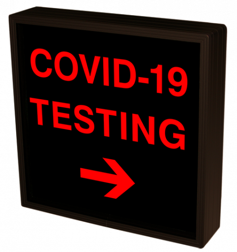 This SBL Series COVID-19 TESTING w/ Right Arrow indoor, blankout, LED backlit sign is designed with a matrix of energy efficient LEDs illuminating a block-style message. The sign features blankout technology that only displays the sign message when illuminated.