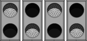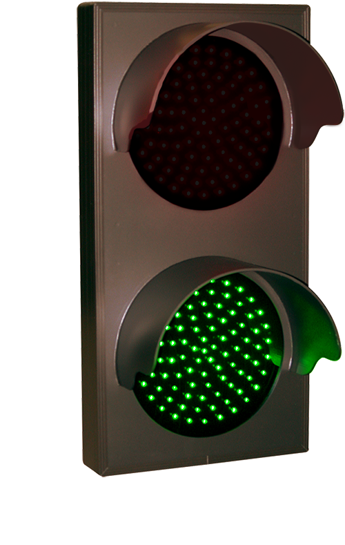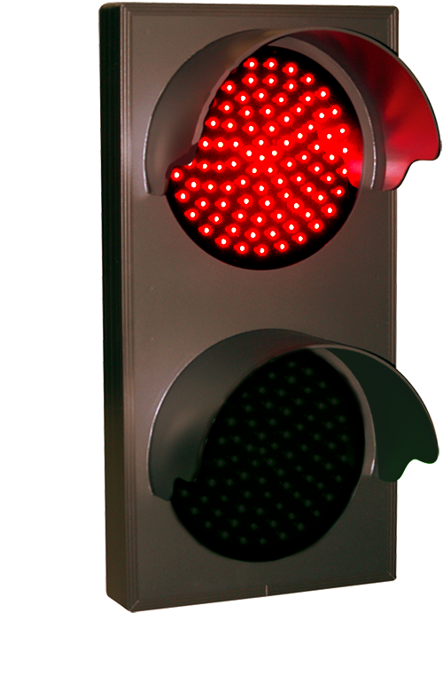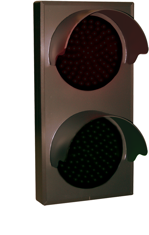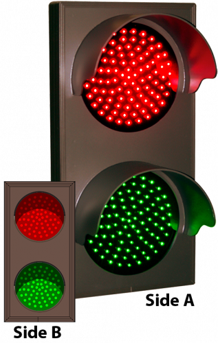 This TCL Series Indicator Dots, Double with Hoods, Vertical, 4 in dia, Red - Green, Double Face outdoor, blank-out sign is designed with super bright LEDs and a contrasting face; we guarantee it's readable in direct sunlight. The sign message is formed by visible LEDs on a black sign face and is designed to illuminate the message(s) when turned on and blank out or extinguish the message when off.