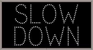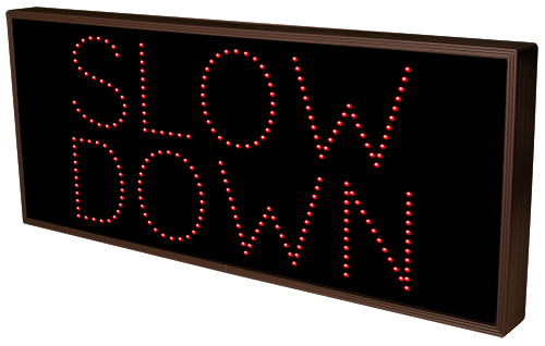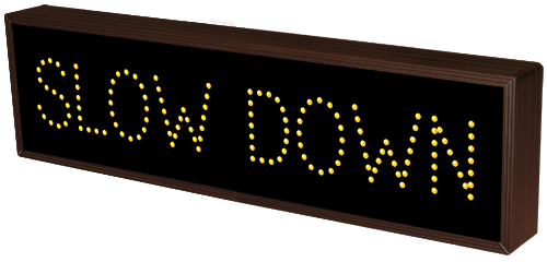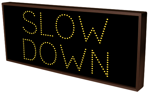 This TCL Series SLOW DOWN (120-277VAC) outdoor, blank-out sign is designed with super bright LEDs and a contrasting face; we guarantee it's readable in direct sunlight. The sign message is formed by visible LEDs on a black sign face and is designed to illuminate the message(s) when turned on and blank out or extinguish the message when off.