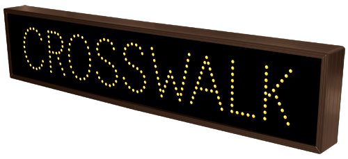 This TCL Series CROSSWALK (120-277VAC) outdoor, blank-out sign is designed with super bright LEDs and a contrasting face; we guarantee it's readable in direct sunlight. The sign message is formed by visible LEDs on a black sign face and is designed to illuminate the message(s) when turned on and blank out or extinguish the message when off.