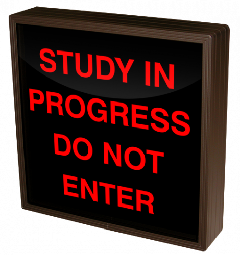 This SBL Series STUDY IN PROGRESS DO NOT ENTER indoor, blankout, LED backlit sign is designed with a matrix of energy efficient LEDs illuminating a block-style message. The sign features blankout technology that only displays the sign message when illuminated.
