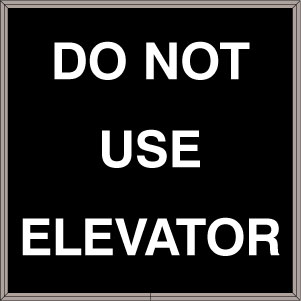 This SBL Series DO NOT USE ELEVATOR indoor, blankout, LED backlit sign is designed with a matrix of energy efficient LEDs illuminating a block-style message. The sign features blankout technology that only displays the sign message when illuminated.