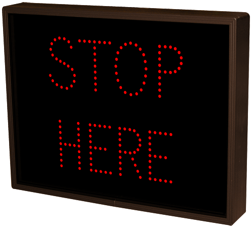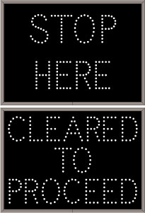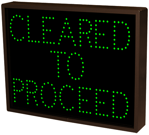 This TCL Series STOP HERE | CLEARED TO PROCEED outdoor, blank-out sign is designed with super bright LEDs and a contrasting face; we guarantee it's readable in direct sunlight. The sign message is formed by visible LEDs on a black sign face and is designed to illuminate the message(s) when turned on and blank out or extinguish the message when off.
