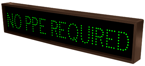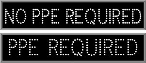 This TCL Series NO PPE REQUIRED | PPE REQUIRED (120-277VAC) outdoor, blank-out sign is designed with super bright LEDs and a contrasting face; we guarantee it's readable in direct sunlight. The sign message is formed by visible LEDs on a black sign face and is designed to illuminate the message(s) when turned on and blank out or extinguish the message when off.