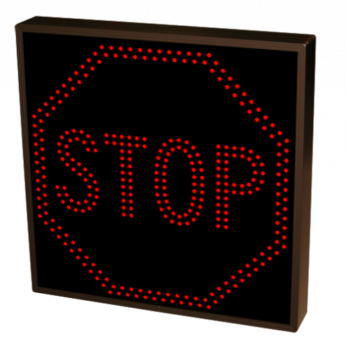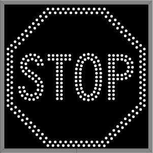 This TCL Series STOP outdoor, blank-out sign is designed with super bright LEDs and a contrasting face; we guarantee it's readable in direct sunlight. The sign message is formed by visible LEDs on a black sign face and is designed to illuminate the message(s) when turned on and blank out or extinguish the message when off.