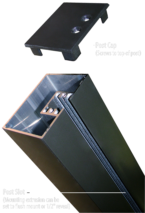 Mounting - 120" Single Post Direct Burial Mount. Post mount is 2-1/4" x 3" extruded aluminum posts with end caps. Standard finish painted Duranodic Bronze. Standard finish is Semi-Gloss Duranodic Bronze unless otherwise noted