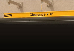 browse productsHang low clearance bars overhead in areas to alert motorists to low ceiling restrictions. Ideal for parking garage entrances or transitions between parking decks; in overhead door opening and under drive-thru canopies. Durable extruded aluminum. Can also be used as a directional sign.