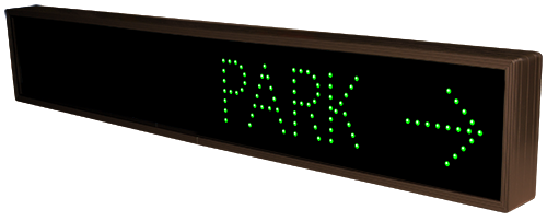 This TCL Series Up Arrow w/EXIT | PARK w/Right Arrow (120-277VAC) outdoor, blank-out sign is designed with super bright LEDs and a contrasting face; we guarantee it's readable in direct sunlight. The sign message is formed by visible LEDs on a black sign face and is designed to illuminate the message(s) when turned on and blank out or extinguish the message when off.