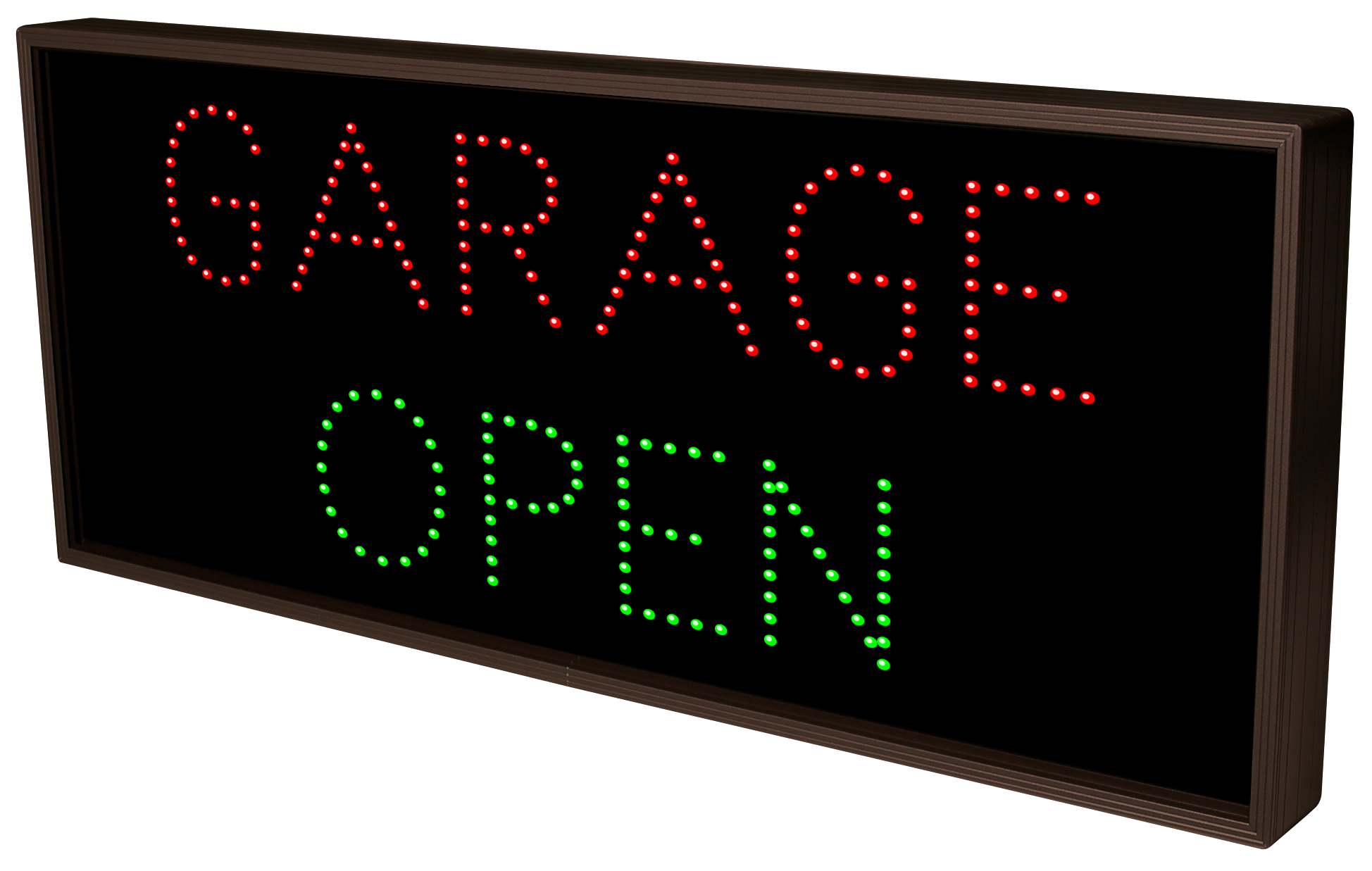 This TCL Series GARAGE | OPEN | FULL outdoor, blank-out sign is designed with super bright LEDs and a contrasting face; we guarantee it's readable in direct sunlight. The sign message is formed by visible LEDs on a black sign face and is designed to illuminate the message(s) when turned on and blank out or extinguish the message when off.