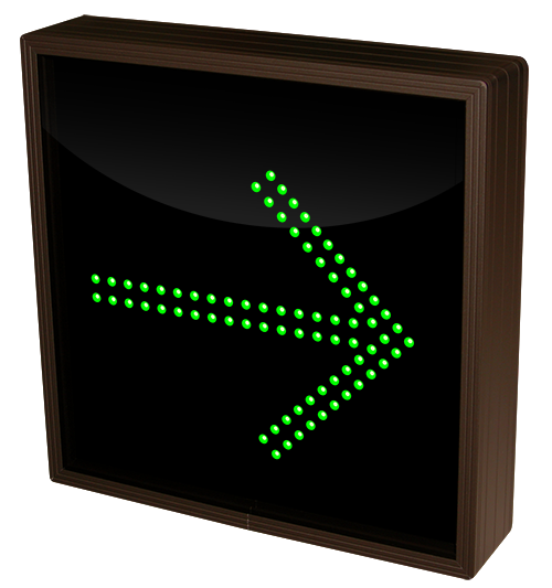 This TCL Series UP ARROW | RIGHT ARROW outdoor, blank-out sign is designed with super bright LEDs and a contrasting face; we guarantee it's readable in direct sunlight. The sign message is formed by visible LEDs on a black sign face and is designed to illuminate the message(s) when turned on and blank out or extinguish the message when off.