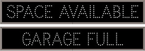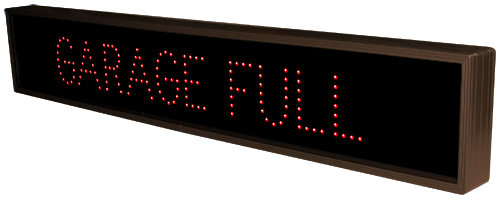 This TCL Series SPACE AVAILABLE | GARAGE FULL (120-277VAC) outdoor, blank-out sign is designed with super bright LEDs and a contrasting face; we guarantee it's readable in direct sunlight. The sign message is formed by visible LEDs on a black sign face and is designed to illuminate the message(s) when turned on and blank out or extinguish the message when off.