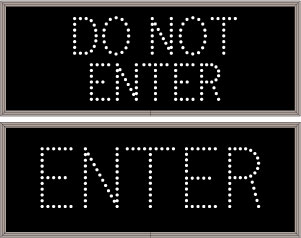 This TCL Series DO NOT ENTER | ENTER outdoor, blank-out sign is designed with super bright LEDs and a contrasting face; we guarantee it's readable in direct sunlight. The sign message is formed by visible LEDs on a black sign face and is designed to illuminate the message(s) when turned on and blank out or extinguish the message when off.